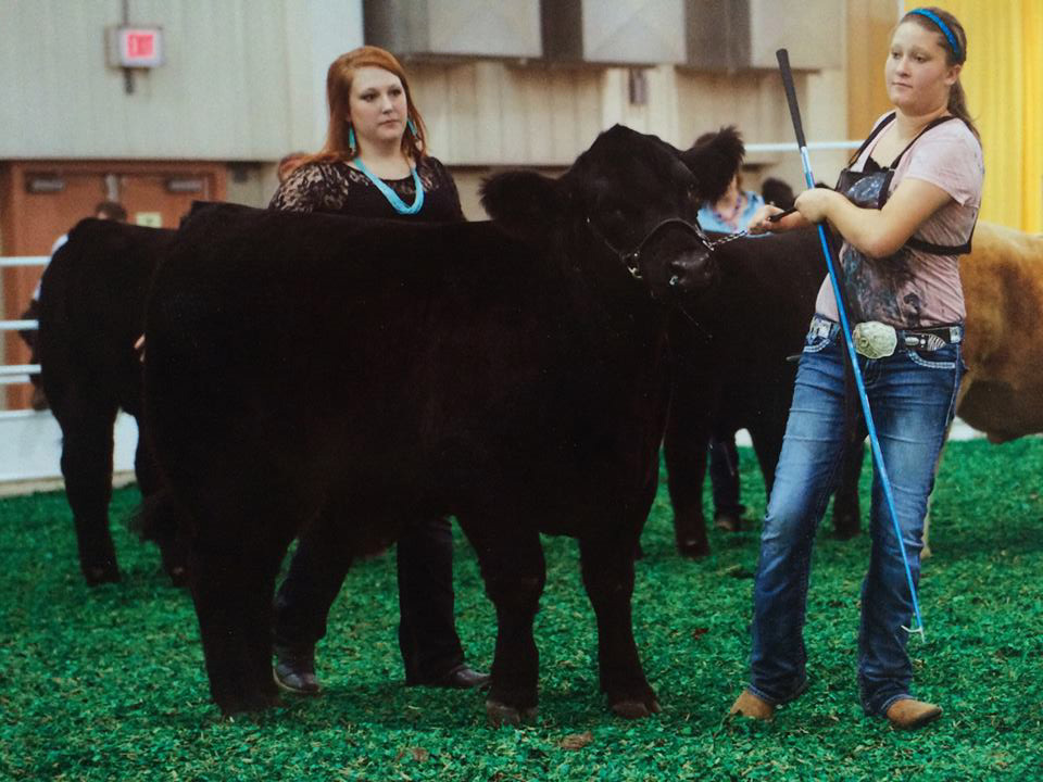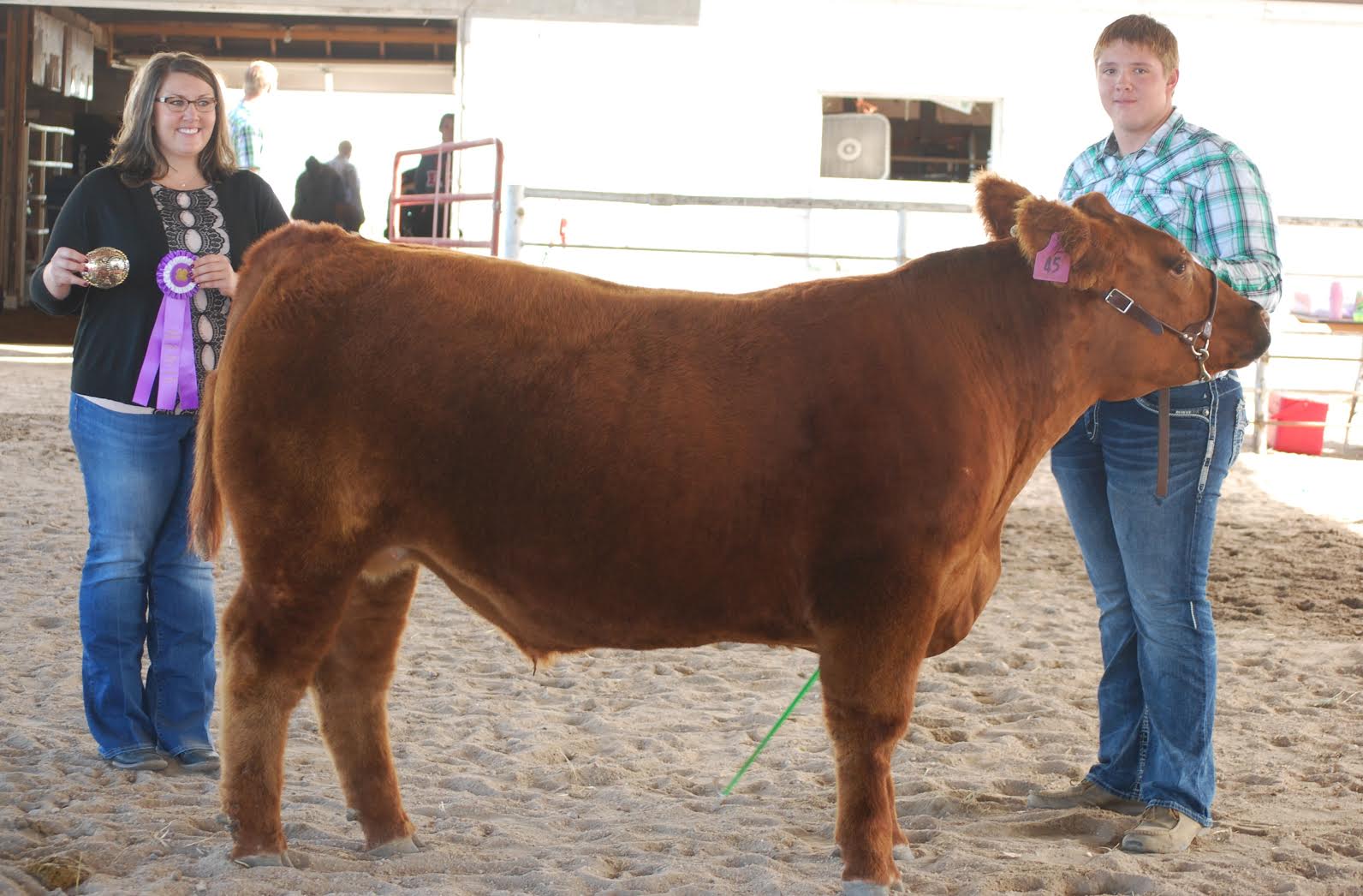 Emily Riley from Norton, Kansas with a BIM steer winning her Maine class